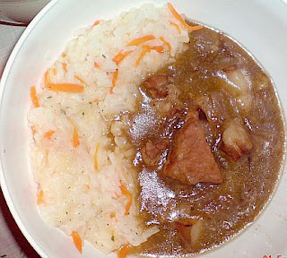 Azi venim cu o reteta simpla si delicioasa care cu siguranta va va da senzatia de mancare buna gatita in casa. E vorba de o tocanita cu niste orez si salata de varza cruda.